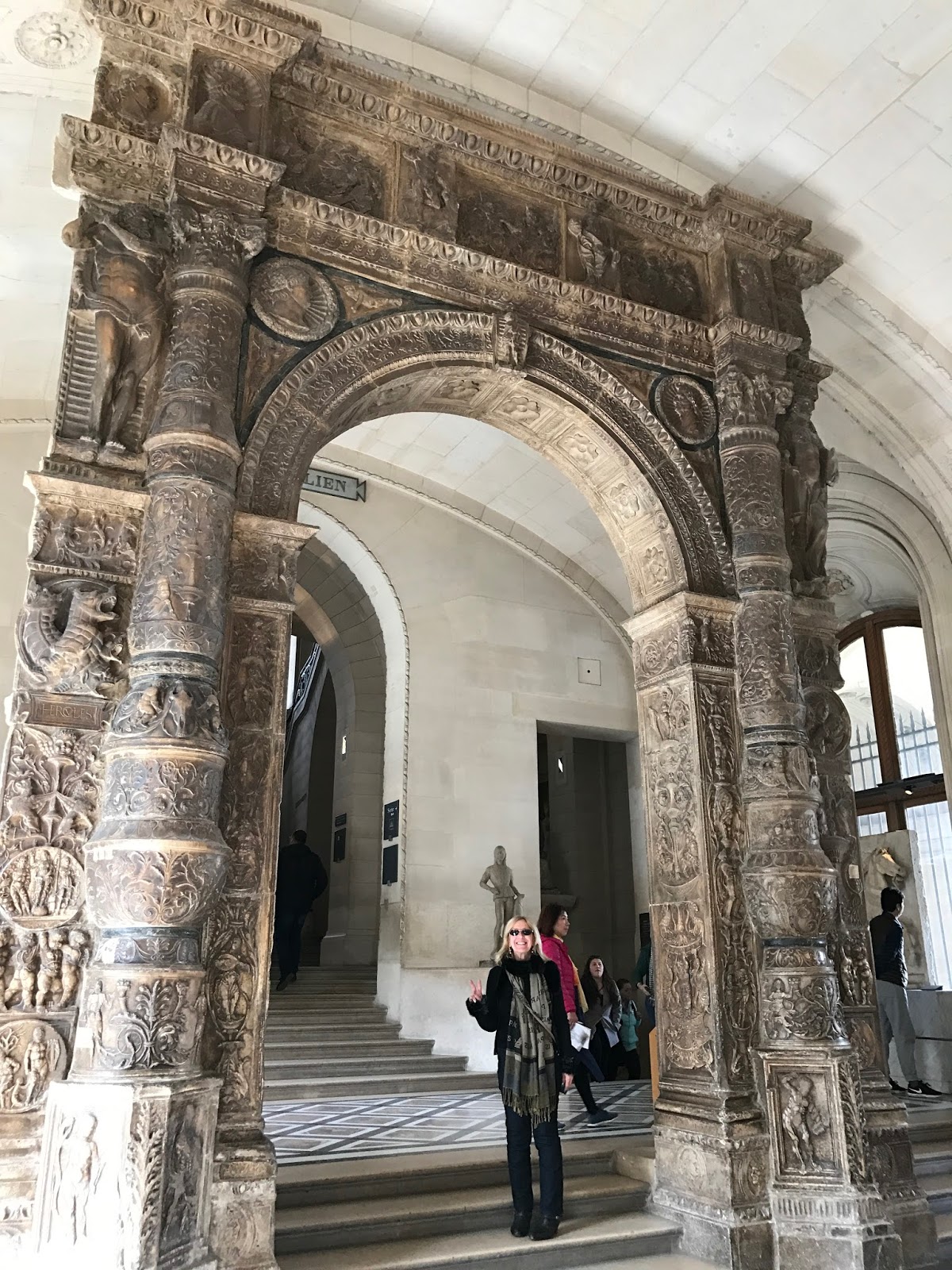 O portal do Palazzo Stanga di Castelnuovo em Cremona fecha a perspectiva da galeria Michelangelo, por trás de duas das mais célebres esculturas do Louvre, conhecidas como "Escravos".